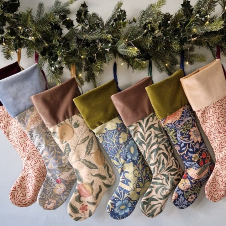 Classic Christmas stockings with lining are perfect for scaling up as decorative stockings to hold your gifts or miniaturising as decorations and advent calendars. Join our festive workshop and customise your stockings with our beautiful fabrics and haberdashery to suit your own theme. Basic knowledge of the sewing machine is helpful but not essential to join this class for adults and children over 15. Fabrics are included and haberdashery will be available -  bells, ribbons, applique motifs etc - but may have a small additional charge.